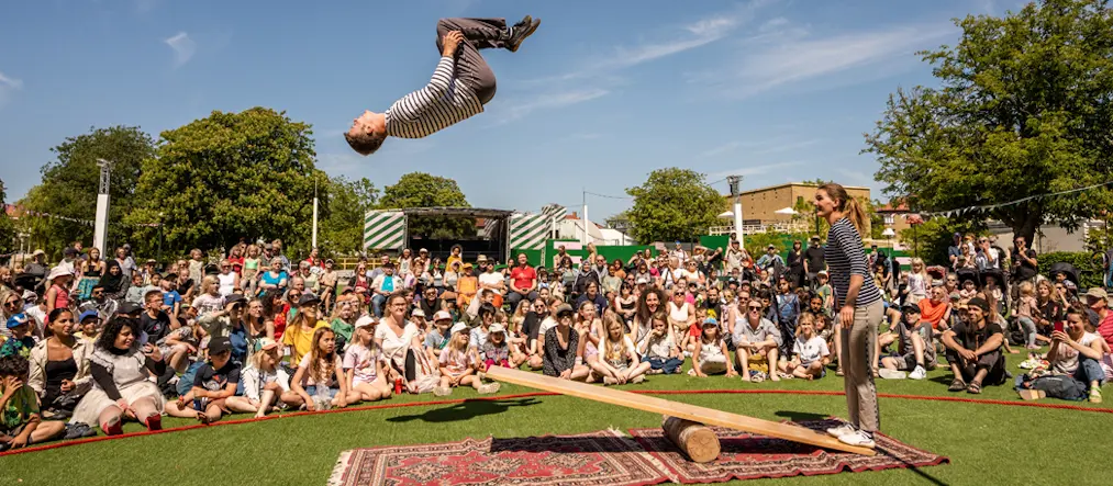 Cirkusduon Felix & Philo uppträda under Karavan Cirkus Festival 2023. Karavan får verksamhetsstöd av Region Skånes kulturnämnd. Foto: Karavan